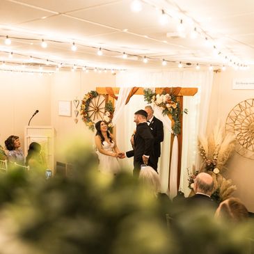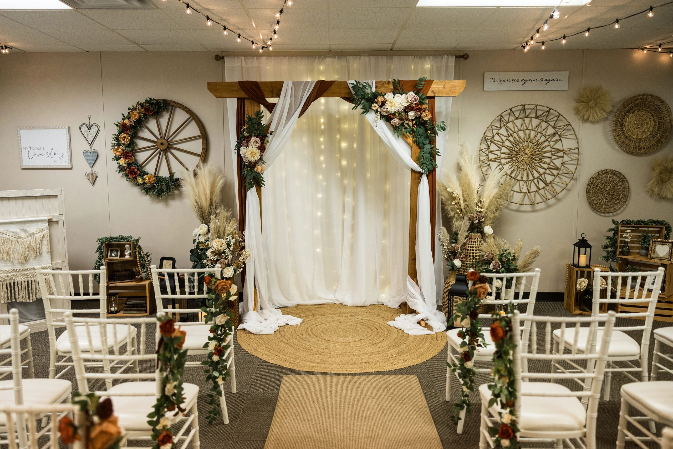 We apologize in advance BUT If you seek the traditional wedding chapel experience you will not find that here, we promise! We have to call ourselves a chapel by law, but that's where the term chapel ends. We think of ourselves as something more than a Wedding Chapel, but less than a large venue. JUST ADDED a small reception venue with a capacity of 48 people. Keep in mind local rentable venues start at $2000+, then you need to pay for an officiant to lead the ceremony ($600+), and plan/pay for all the other facility requirements (think chair rentals, rental of the arch, flowers, sound system, etc). To do a ceremony for 48 attendees would cost $5000+ on the low end and a lot of extra work for you. We can provide a micro venue experience for a fraction of this price.